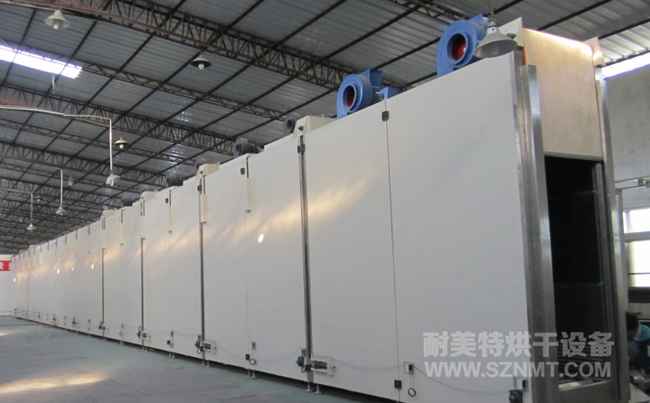 箱體共分為10段,每段長度=4米,其中預熱2段,烘干4段,程序降溫3段,強制冷卻1段;