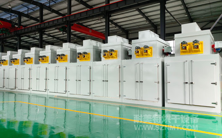 3.單個產品進入烘箱前91KG,烘烤后49KG,去水量42KG/個,每個烘箱放置16個產品,爐內滿足8個架子每個架子上下疊加放置2個產品,架子尺寸為800*800*1750mm。