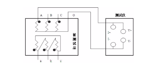 關(guān)于大容量的變壓器的低壓側(cè)丈量時(shí),如果在既有的情況下,直流電阻測驗(yàn)儀的最大電流比較小,或許為了加速丈量速度,可挑選助磁法丈量。圖三、圖四分別為丈量低壓Rac、Rba、Rcb的接線辦法。