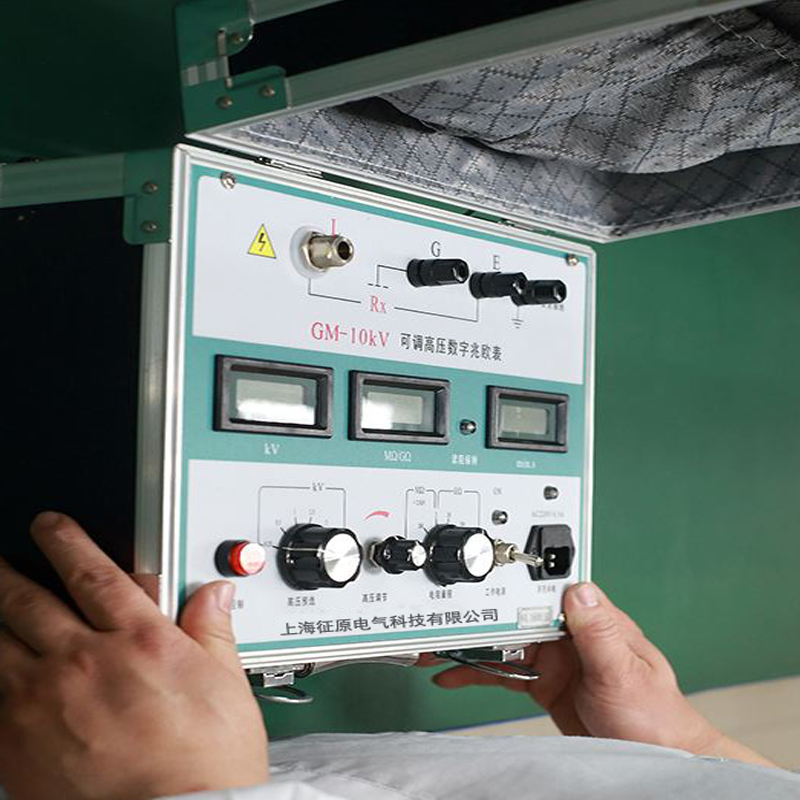 4、測試電源的電壓范圍寬廣,可選擇0.25、0.5、1、2.5、5、10、15kV,也可從0V平滑調(diào)起連續(xù)調(diào)節(jié)到需要的電壓。