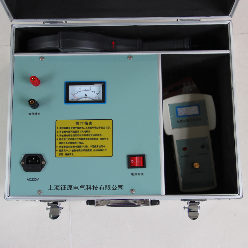 電纜識別儀與常規(guī)的識別儀不同,采用了最新的通信技術(shù),在發(fā)射端采用單片機(jī)技術(shù)對發(fā)射信號進(jìn)行編碼、功率驅(qū)動(dòng),將信號耦合到電纜上;接收機(jī)中的單片機(jī)對接收的相位編碼信號解碼和相位識別。根據(jù)目標(biāo)電纜上的信號相位特征的唯一性將目標(biāo)電纜從一大束電纜中識別出來。因此工作性能可靠,對超長電纜也能做到準(zhǔn)確判別,是一種輕小型、緊湊型、便攜式儀器。適用于各種類型的高低壓動(dòng)力電纜。